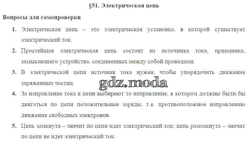 ГДЗ решение к заданию № § 51. Электрическая цепь Физика 8 класс Пурышева Н.С. Дрофа 2017 ФГОС бесплатно на гдз.мода!