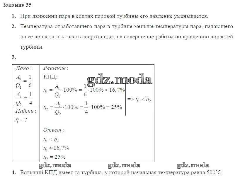 ГДЗ решение к заданию № № 35 Физика 8 класс Пурышева Н.С. Дрофа 2017 ФГОС бесплатно на гдз.мода!