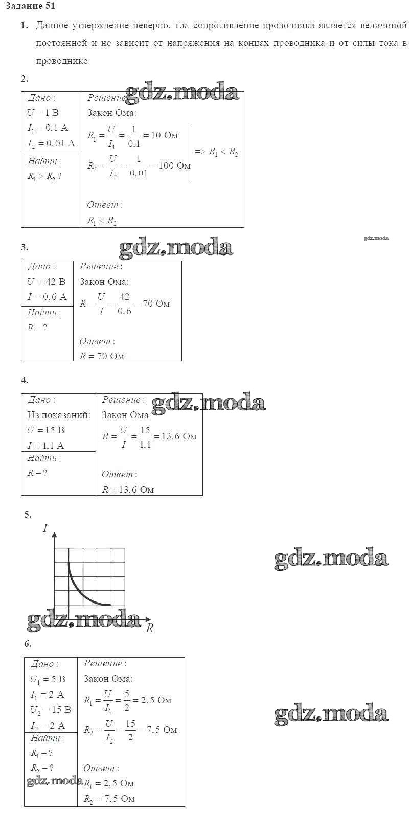 ГДЗ решение к заданию № № 51 Физика 8 класс Пурышева Н.С. Дрофа 2017 ФГОС бесплатно на гдз.мода!