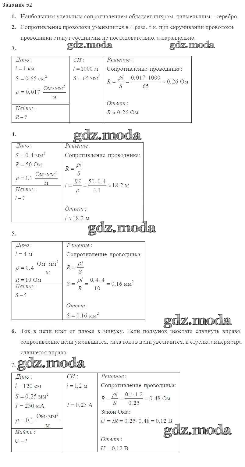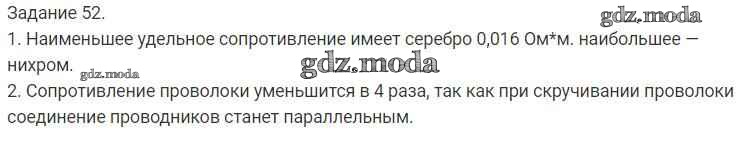 ГДЗ решение к заданию № № 52 Физика 8 класс Пурышева Н.С. Дрофа 2017 ФГОС бесплатно на гдз.мода!