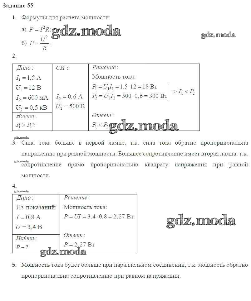 ГДЗ решение к заданию № № 55 Физика 8 класс Пурышева Н.С. Дрофа 2017 ФГОС бесплатно на гдз.мода!