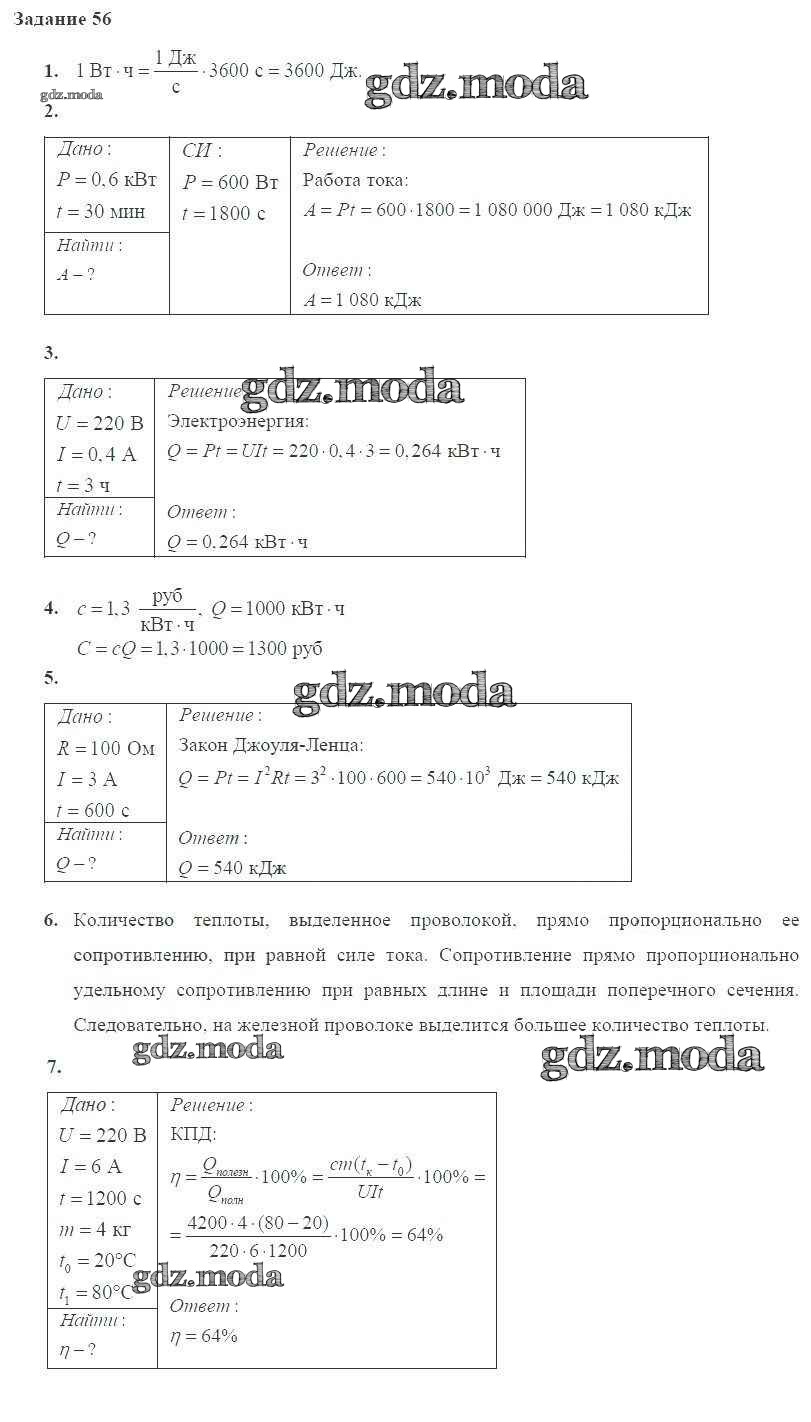 ГДЗ решение к заданию № № 56 Физика 8 класс Пурышева Н.С. Дрофа 2017 ФГОС бесплатно на гдз.мода!