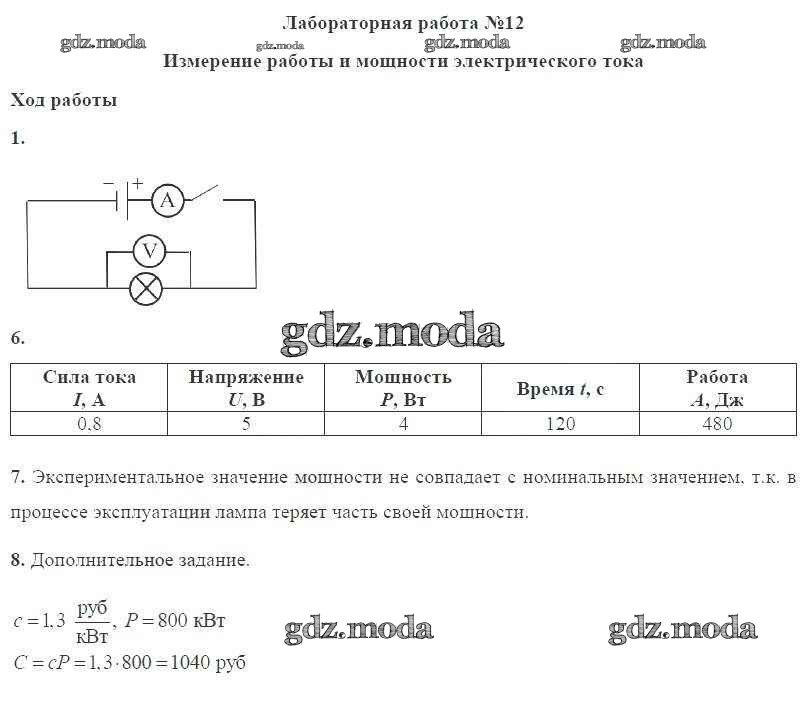 ОТВЕТ на задание № ЛР №12. Измерение работы и мощности электрического тока Учебник по Физике 8 класс Пурышева Вертикаль