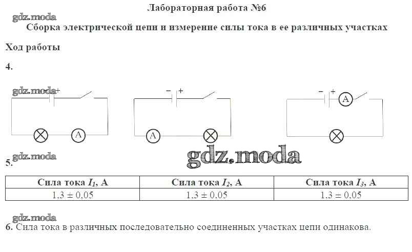 ОТВЕТ на задание № ЛР №6. Сборка электрической цепи и измерение силы тока в ее различных участках Учебник по Физике 8 класс Пурышева Вертикаль