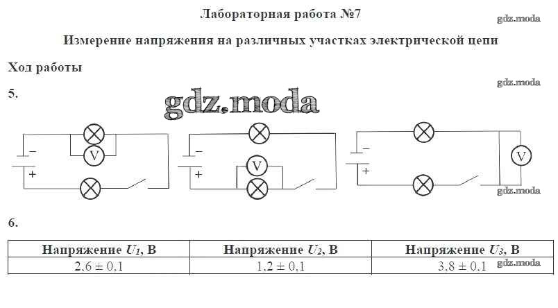 ОТВЕТ на задание № ЛР №7. Измерение напряжения на различных участках электрической цепи Учебник по Физике 8 класс Пурышева Вертикаль