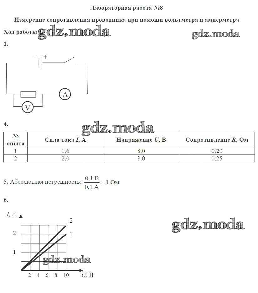 ОТВЕТ на задание № ЛР №8. Измерение сопротивления проводника при помощи вольтметра и амперметра Учебник по Физике 8 класс Пурышева Вертикаль