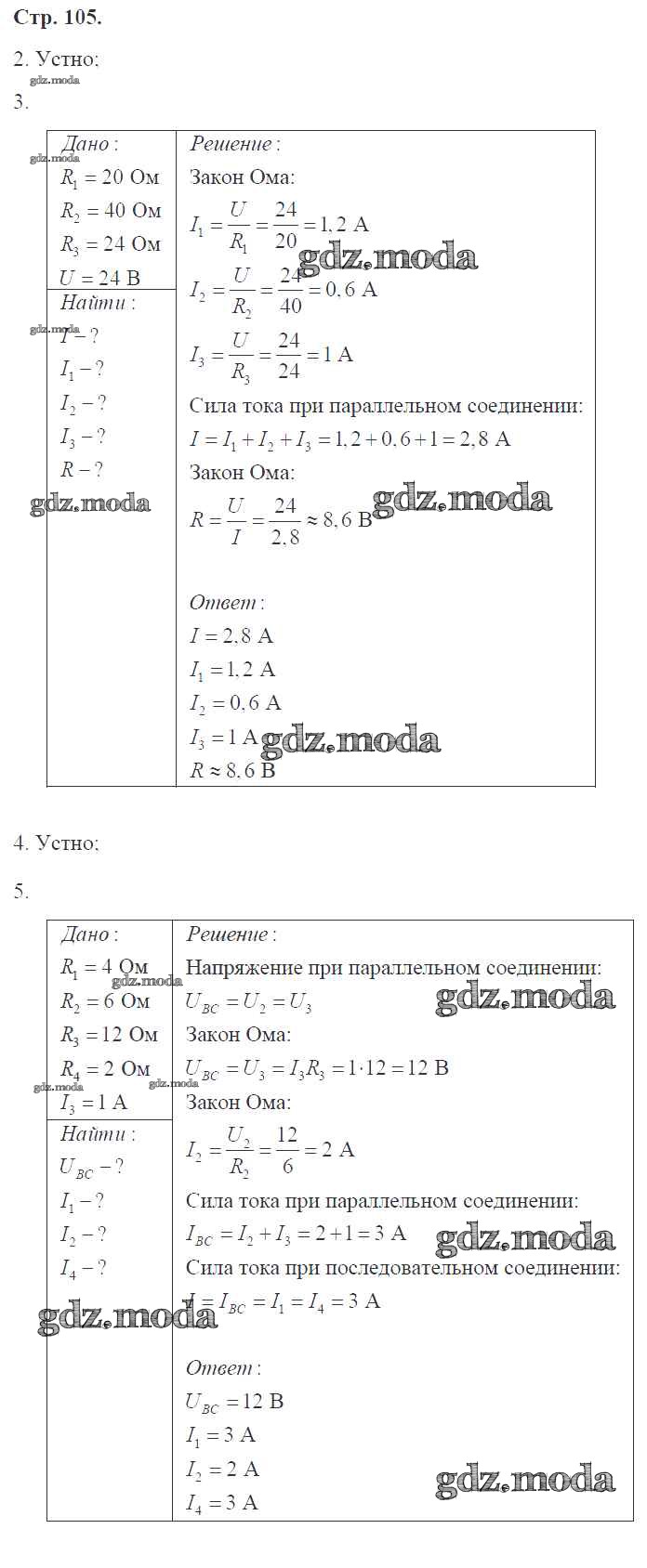 ГДЗ решение к заданию № 105 Физика 8 класс рабочая тетрадь Перышкин А.В. (к уч. Перышкина) Экзамен 2017 ФГОС бесплатно на гдз.мода!
