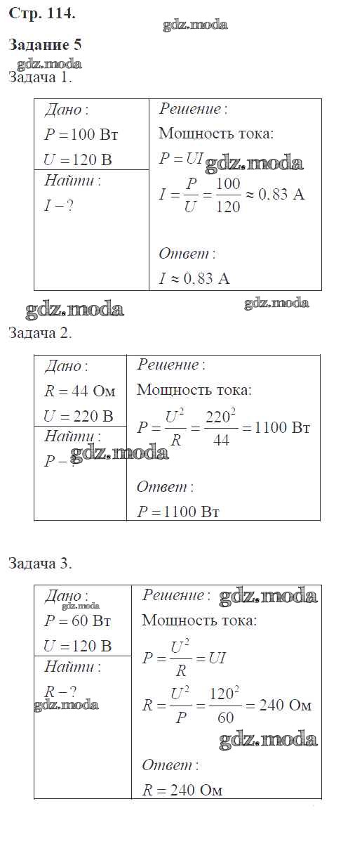 ГДЗ решение к заданию № 114 Физика 8 класс рабочая тетрадь Перышкин А.В. (к уч. Перышкина) Экзамен 2017 ФГОС бесплатно на гдз.мода!