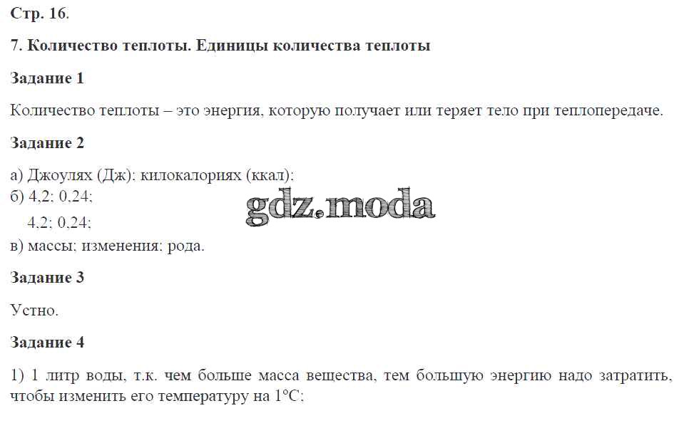 ОТВЕТ на задание № 16 Рабочая тетрадь по Физике 8 класс Перышкин УМК