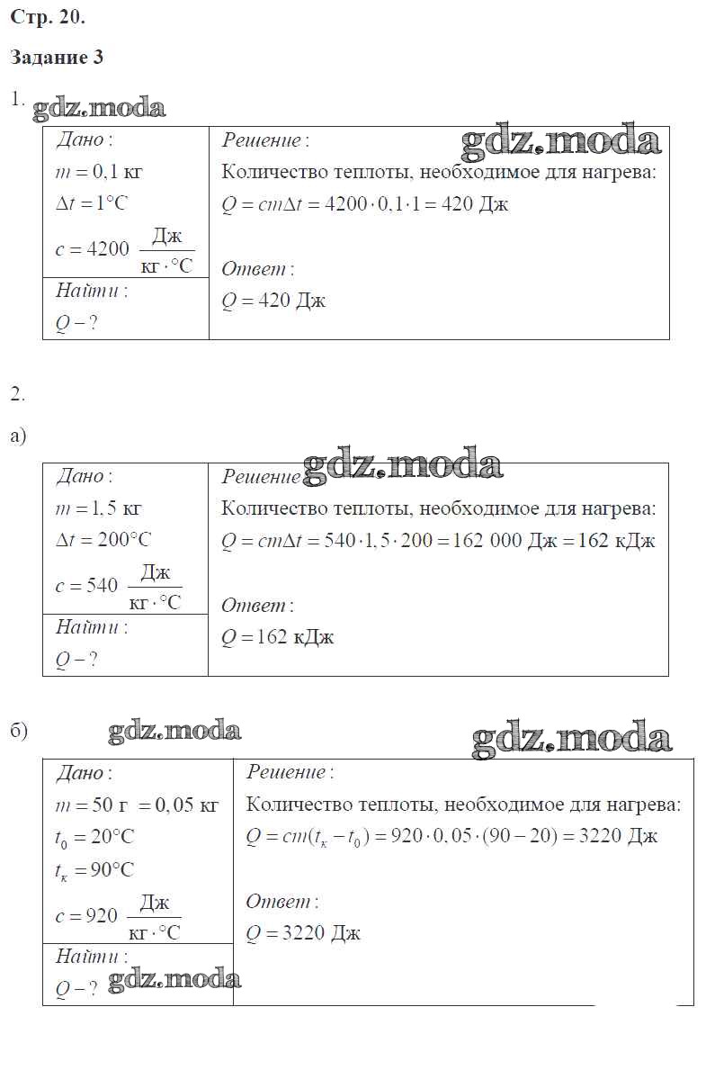ГДЗ решение к заданию № 20 Физика 8 класс рабочая тетрадь Перышкин А.В. (к уч. Перышкина) Экзамен 2017 ФГОС бесплатно на гдз.мода!