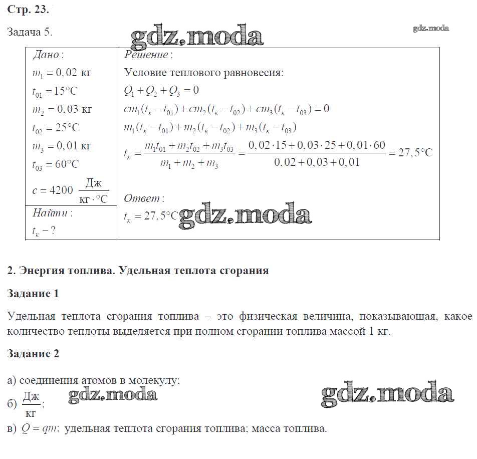 ГДЗ решение к заданию № 23 Физика 8 класс рабочая тетрадь Перышкин А.В. (к уч. Перышкина) Экзамен 2017 ФГОС бесплатно на гдз.мода!