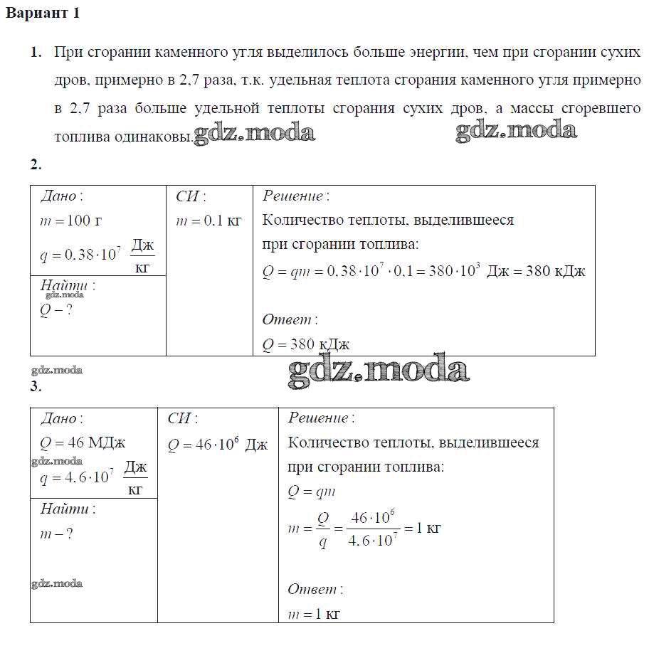 ГДЗ решение к заданию № Вариант-1 Физика 8 класс Самостоятельные и контрольные работы Марон А.Е. (к уч. Перышкина) Дрофа 2017 ФГОС бесплатно на гдз.мода!