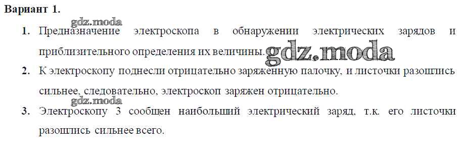 ОТВЕТ на задание № Вариант-1 Самостоятельные и контрольные работы по Физике 8 класс Марон Вертикаль