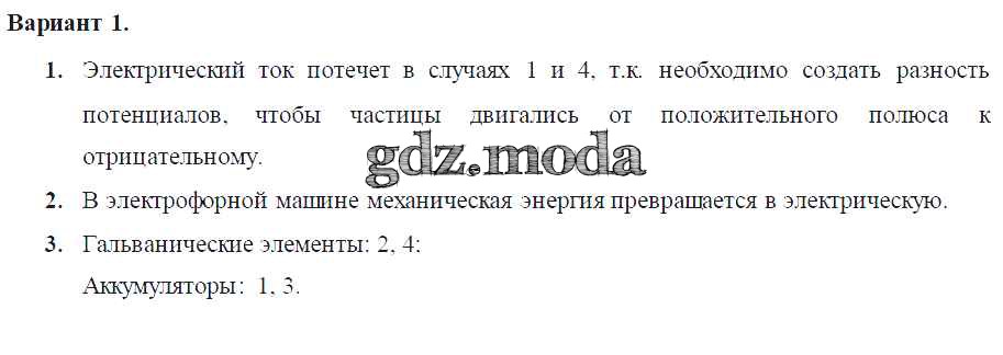 ОТВЕТ на задание № Вариант-1 Самостоятельные и контрольные работы по Физике 8 класс Марон Вертикаль