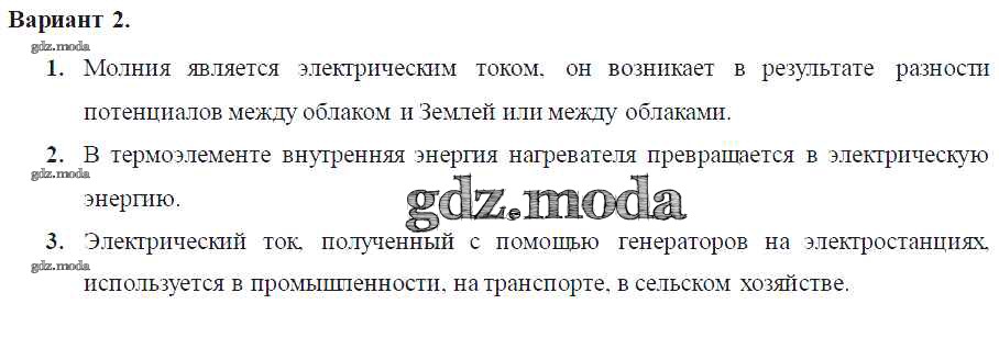 ОТВЕТ на задание № Вариант-2 Самостоятельные и контрольные работы по Физике 8 класс Марон Вертикаль