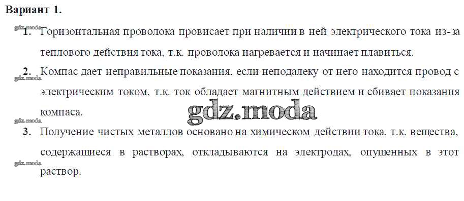 ОТВЕТ на задание № Вариант-1 Самостоятельные и контрольные работы по Физике 8 класс Марон Вертикаль