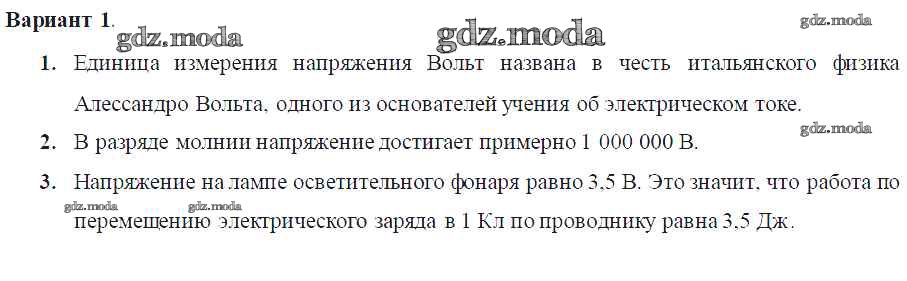ОТВЕТ на задание № Вариант-1 Самостоятельные и контрольные работы по Физике 8 класс Марон Вертикаль