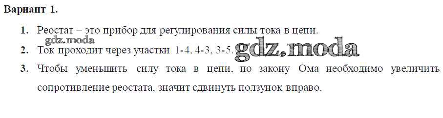 ОТВЕТ на задание № Вариант-1 Самостоятельные и контрольные работы по Физике 8 класс Марон Вертикаль