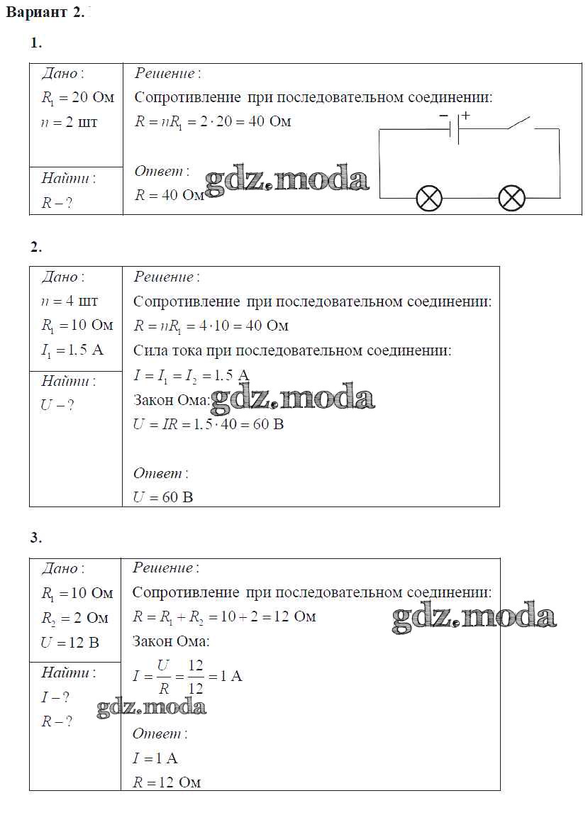 ОТВЕТ на задание № Вариант-2 Самостоятельные и контрольные работы по Физике 8 класс Марон Вертикаль