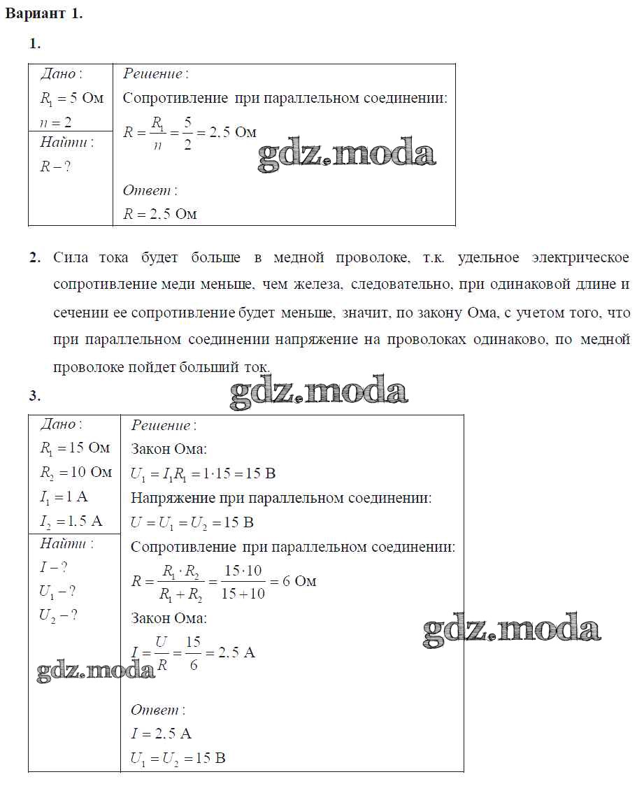 ОТВЕТ на задание № Вариант-1 Самостоятельные и контрольные работы по Физике 8 класс Марон Вертикаль