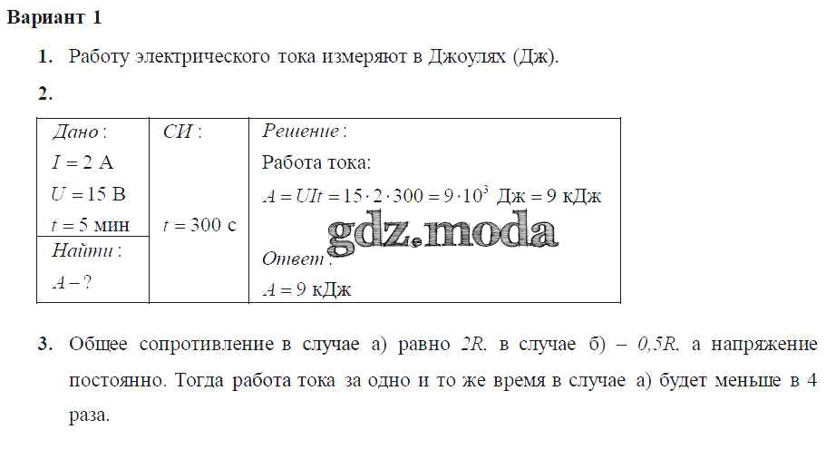 ГДЗ решение к заданию № Вариант-1 Физика 8 класс Самостоятельные и контрольные работы Марон А.Е. (к уч. Перышкина) Дрофа 2017 ФГОС бесплатно на гдз.мода!