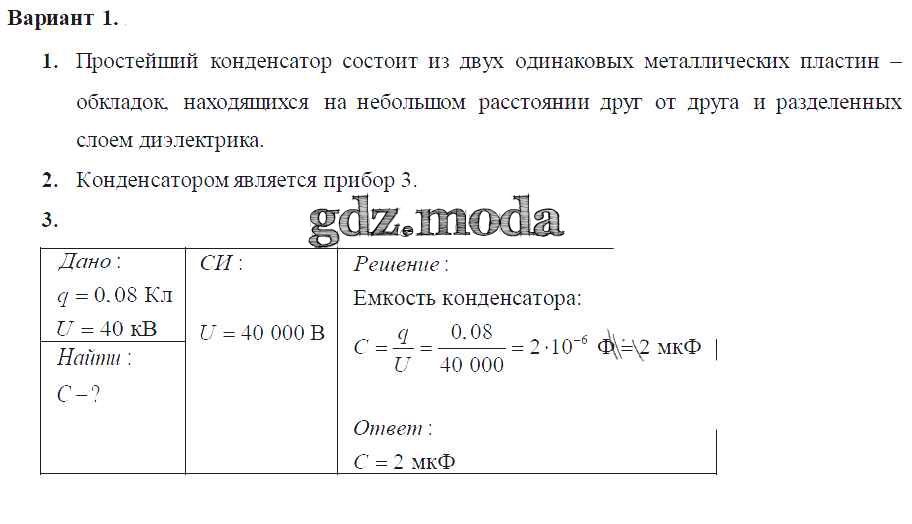 ОТВЕТ на задание № Вариант-1 Самостоятельные и контрольные работы по Физике 8 класс Марон Вертикаль