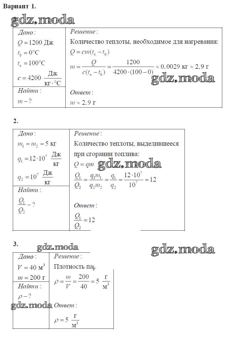 ГДЗ решение к заданию № Вариант-1 Физика 8 класс Самостоятельные и контрольные работы Марон А.Е. (к уч. Перышкина) Дрофа 2017 ФГОС бесплатно на гдз.мода!