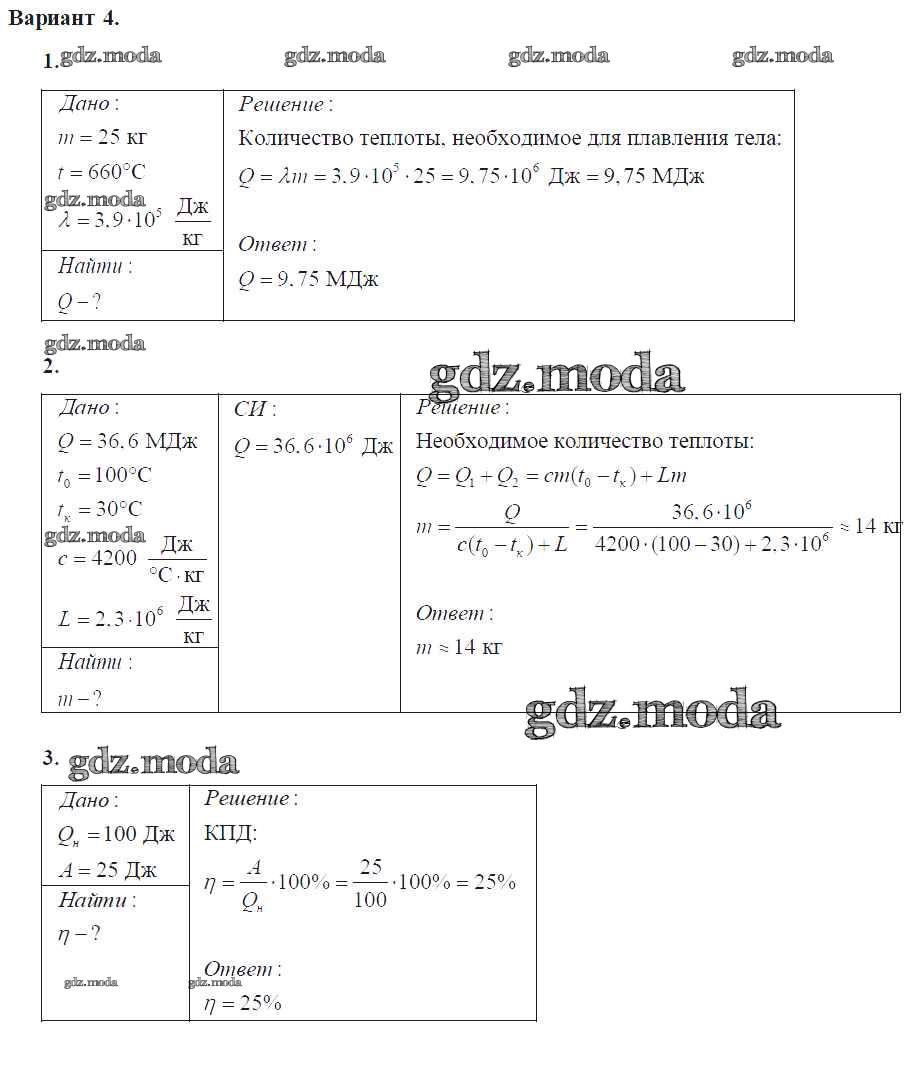 ГДЗ решение к заданию № Вариант-4 Физика 8 класс Самостоятельные и контрольные работы Марон А.Е. (к уч. Перышкина) Дрофа 2017 ФГОС бесплатно на гдз.мода!
