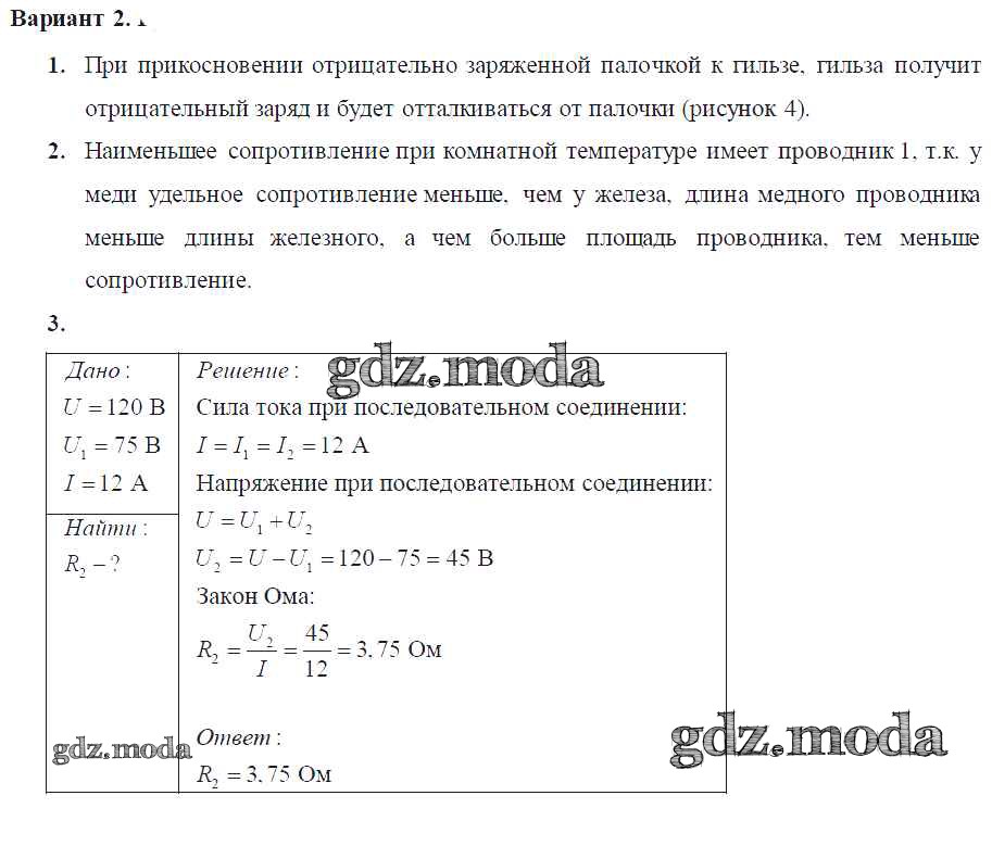 ГДЗ решение к заданию № Вариант-2 Физика 8 класс Самостоятельные и контрольные работы Марон А.Е. (к уч. Перышкина) Дрофа 2017 ФГОС бесплатно на гдз.мода!