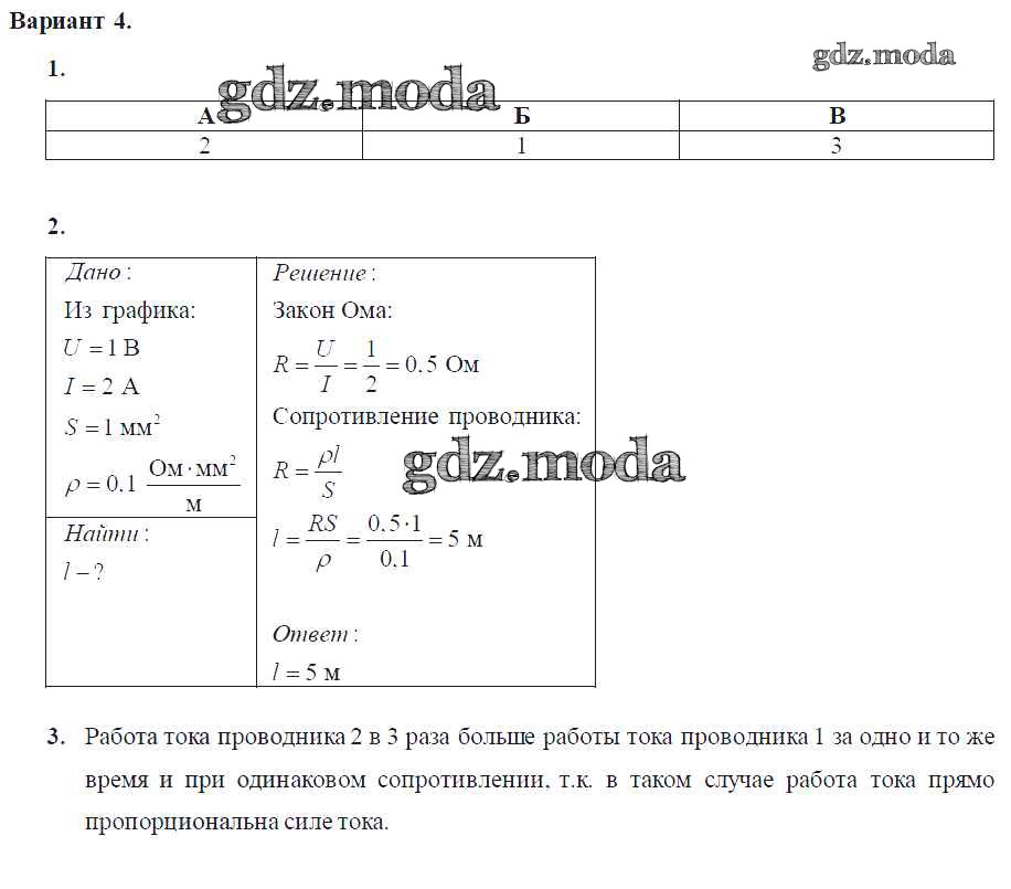 ГДЗ решение к заданию № Вариант-4 Физика 8 класс Самостоятельные и контрольные работы Марон А.Е. (к уч. Перышкина) Дрофа 2017 ФГОС бесплатно на гдз.мода!
