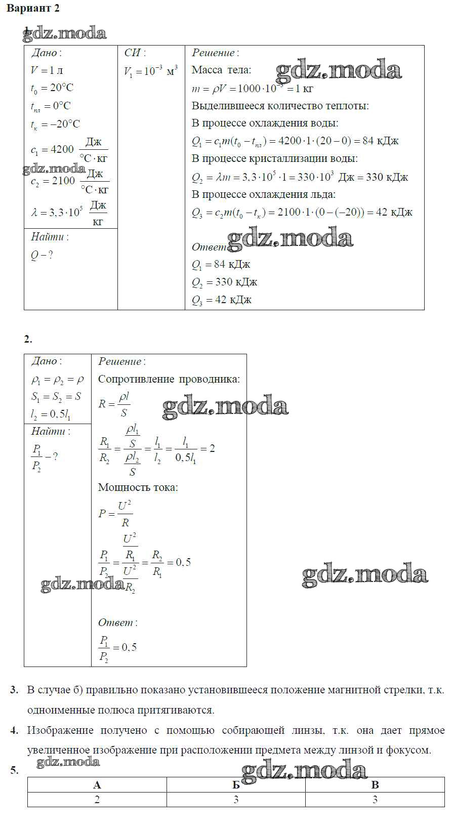 ГДЗ решение к заданию № Вариант-2 Физика 8 класс Самостоятельные и контрольные работы Марон А.Е. (к уч. Перышкина) Дрофа 2017 ФГОС бесплатно на гдз.мода!