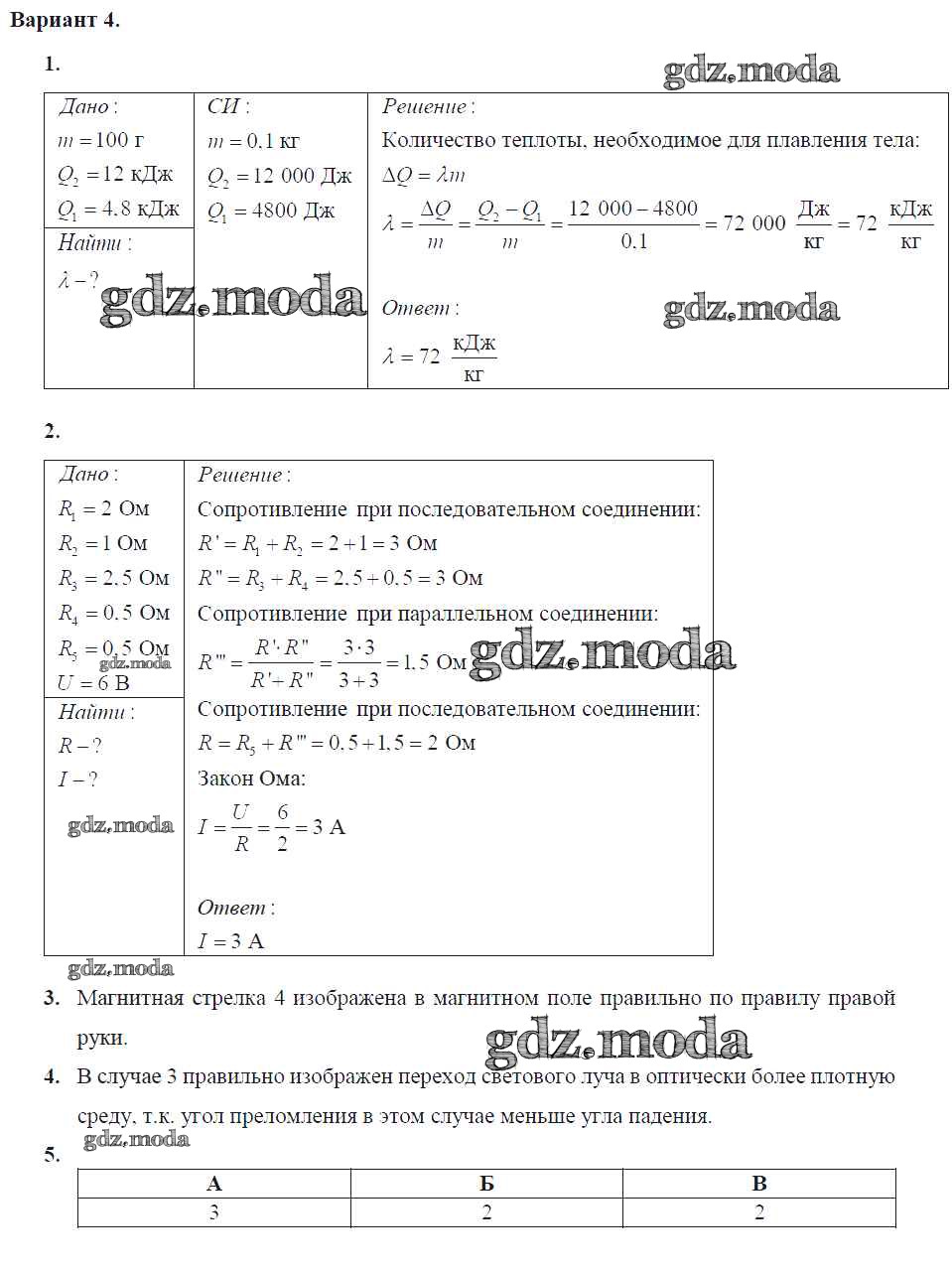 ГДЗ решение к заданию № Вариант-4 Физика 8 класс Самостоятельные и контрольные работы Марон А.Е. (к уч. Перышкина) Дрофа 2017 ФГОС бесплатно на гдз.мода!