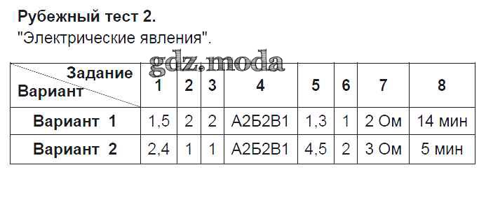 ОТВЕТ на задание № 2 Тесты по Физике 8 класс Слепнева Вертикаль