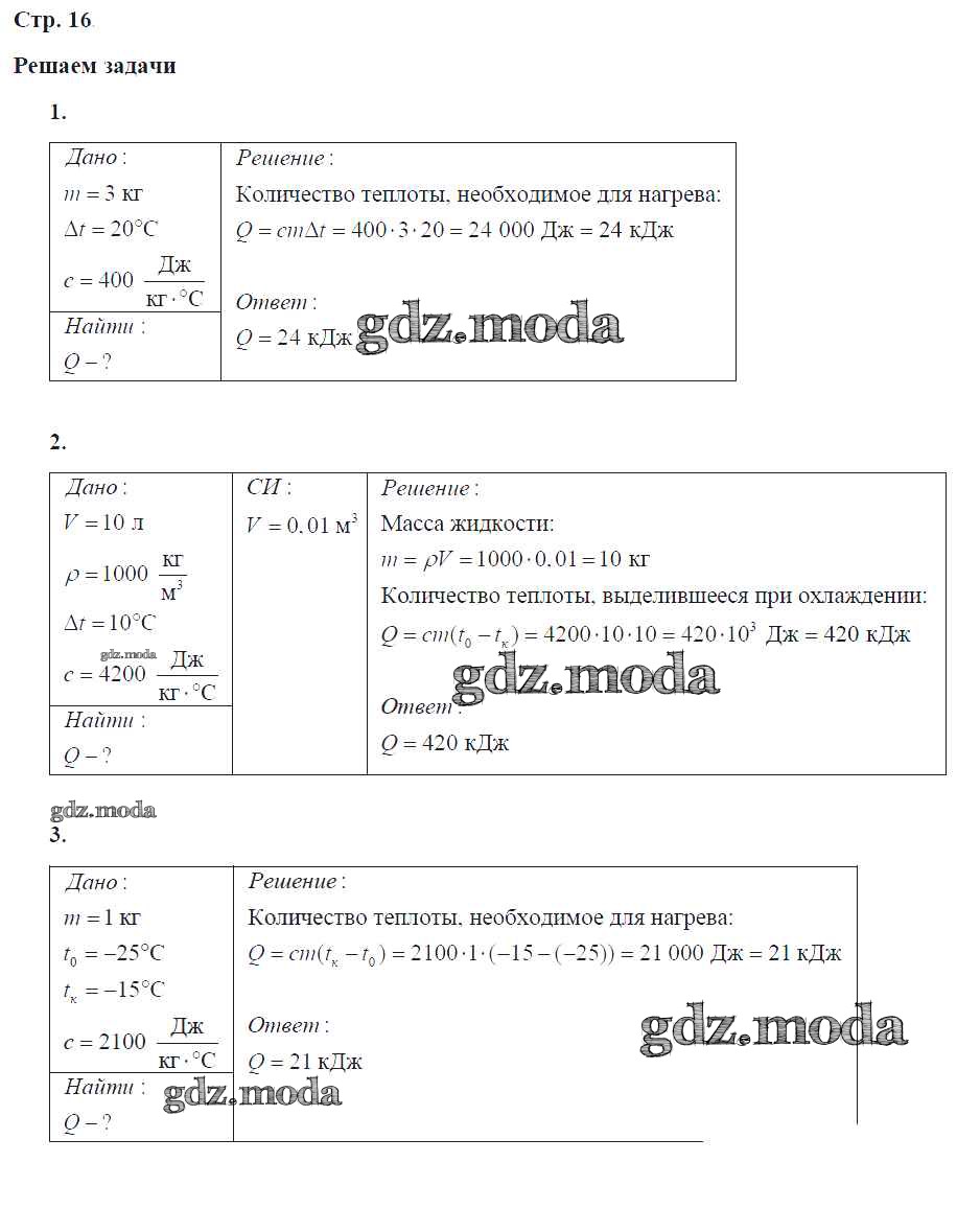 ГДЗ решение к заданию № 16 Физика 8 класс тетрадь-тренажер Артеменков Д.А. Просвещение 2012 ФГОС бесплатно на гдз.мода!
