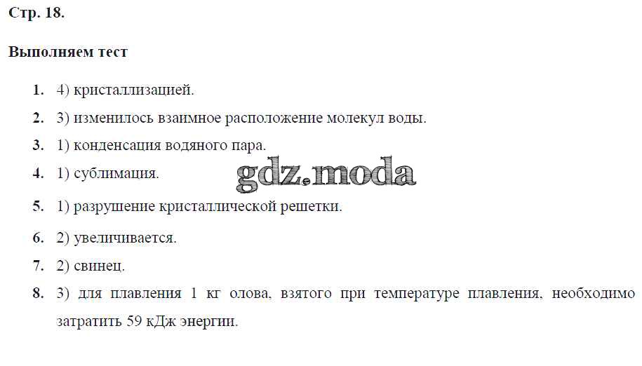 ГДЗ решение к заданию № 18 Физика 8 класс тетрадь-тренажер Артеменков Д.А. Просвещение 2012 ФГОС бесплатно на гдз.мода!
