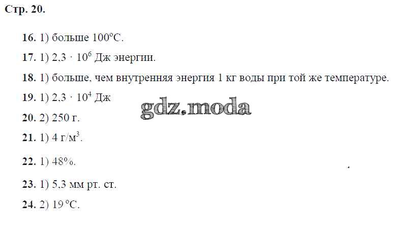ГДЗ решение к заданию № 20 Физика 8 класс тетрадь-тренажер Артеменков Д.А. Просвещение 2012 ФГОС бесплатно на гдз.мода!
