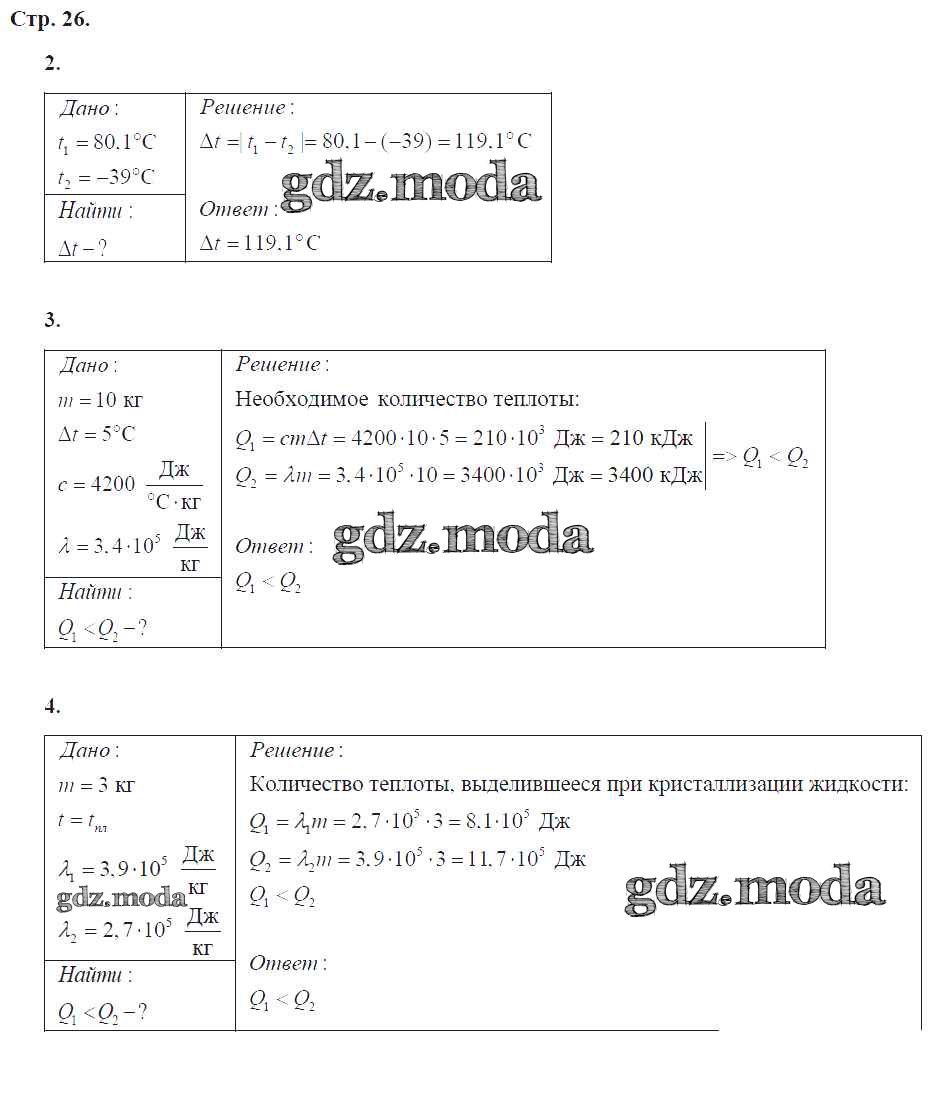 ГДЗ решение к заданию № 26 Физика 8 класс тетрадь-тренажер Артеменков Д.А. Просвещение 2012 ФГОС бесплатно на гдз.мода!