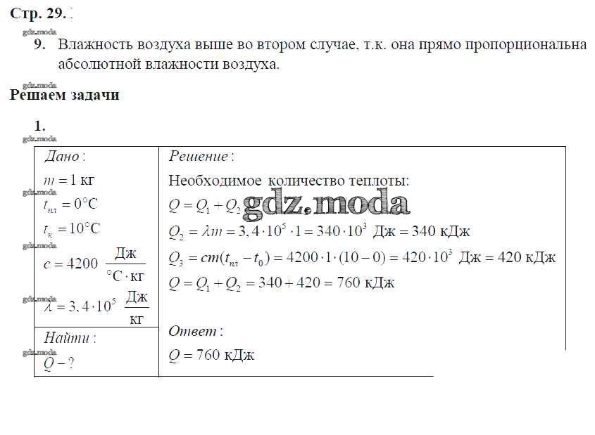 ГДЗ решение к заданию № 29 Физика 8 класс тетрадь-тренажер Артеменков Д.А. Просвещение 2012 ФГОС бесплатно на гдз.мода!