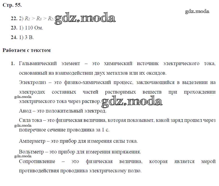 ГДЗ решение к заданию № 55 Физика 8 класс тетрадь-тренажер Артеменков Д.А. Просвещение 2012 ФГОС бесплатно на гдз.мода!
