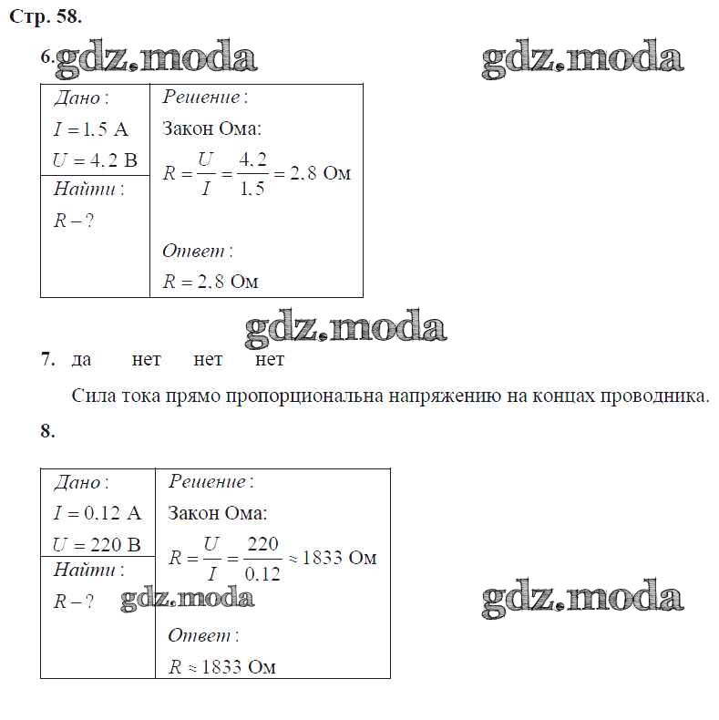 ГДЗ решение к заданию № 58 Физика 8 класс тетрадь-тренажер Артеменков Д.А. Просвещение 2012 ФГОС бесплатно на гдз.мода!