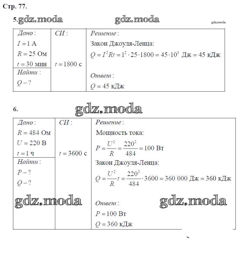 ГДЗ решение к заданию № 77 Физика 8 класс тетрадь-тренажер Артеменков Д.А. Просвещение 2012 ФГОС бесплатно на гдз.мода!