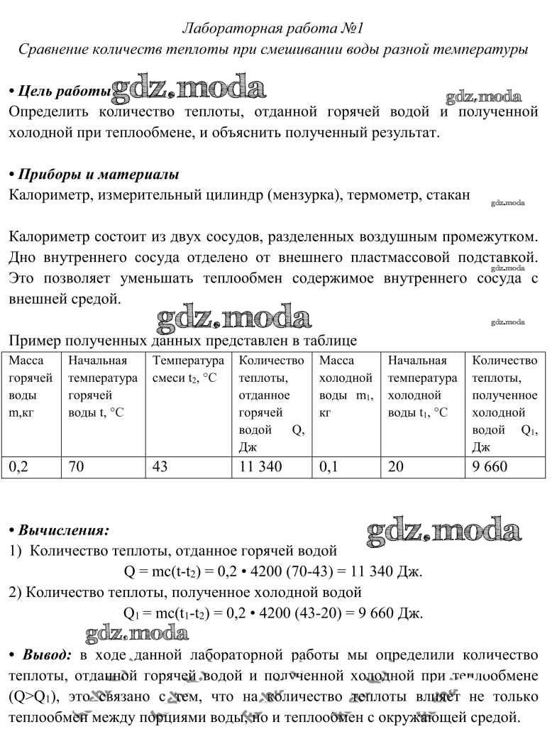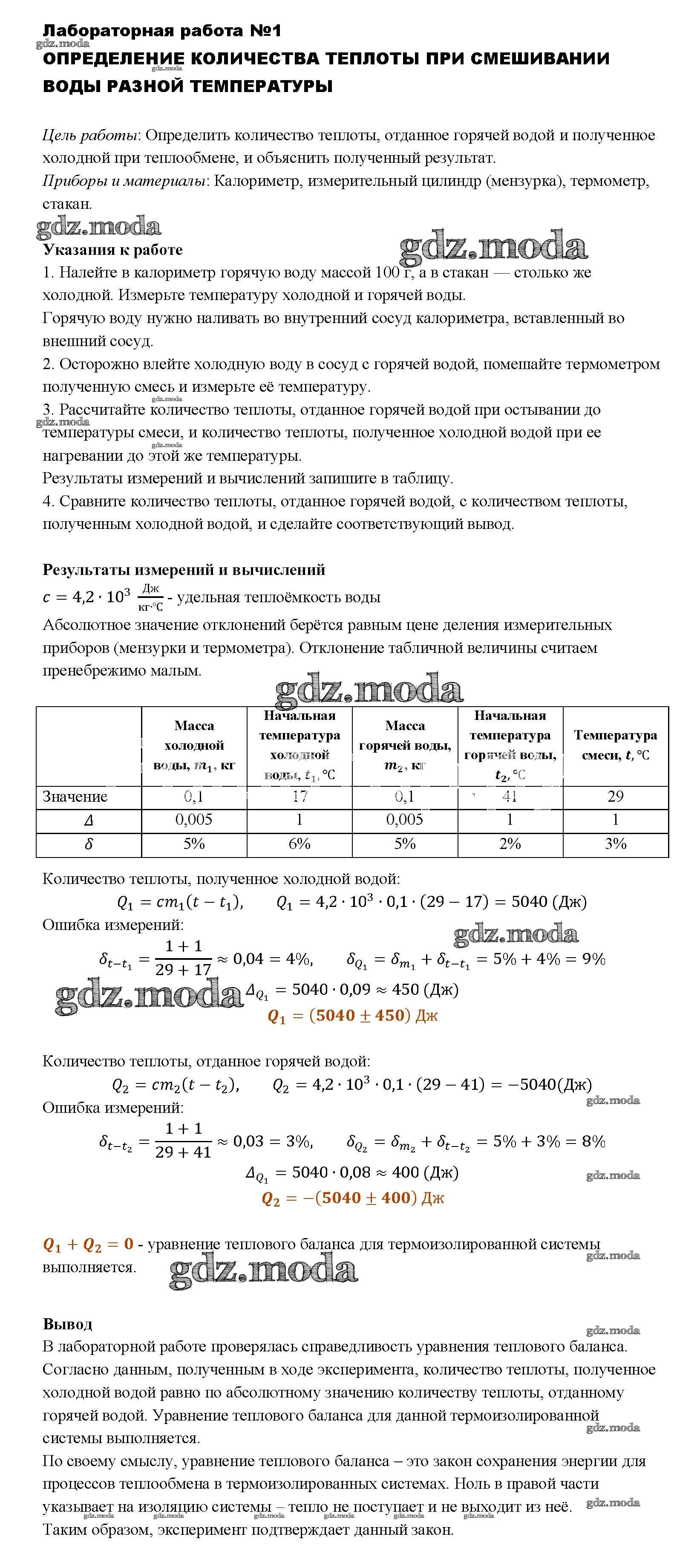 ОТВЕТ на задание № ЛР-1 Учебник по Физике 8 класс Перышкин Вертикаль