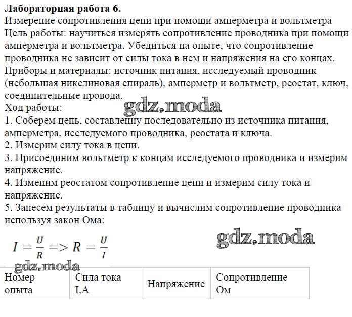 ОТВЕТ на задание № ЛР-6 Учебник по Физике 8 класс Перышкин Вертикаль