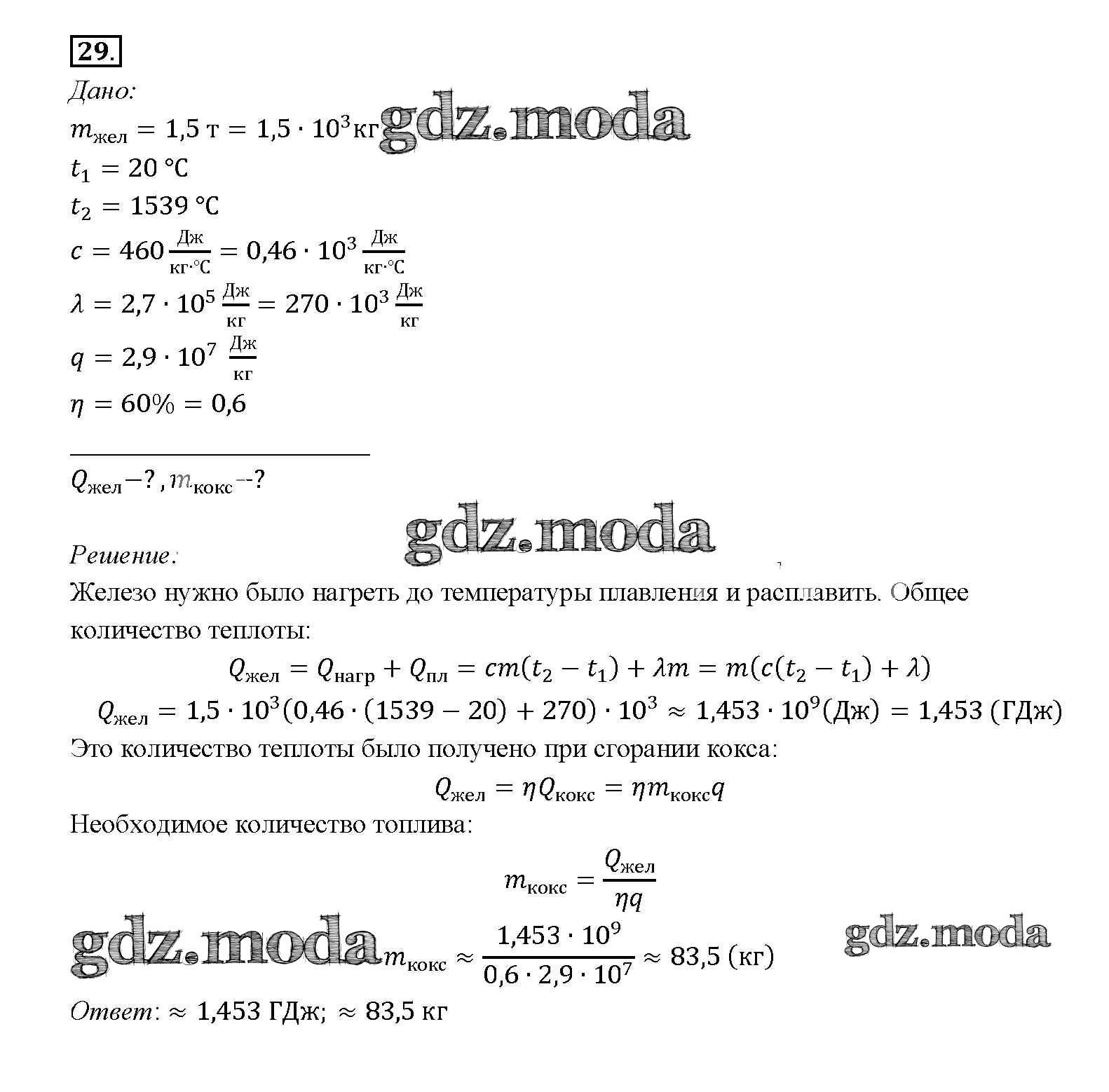 ГДЗ решение к заданию № 29 Физика 8 класс Перышкин А.В. Дрофа 2014 ФГОС бесплатно на гдз.мода!