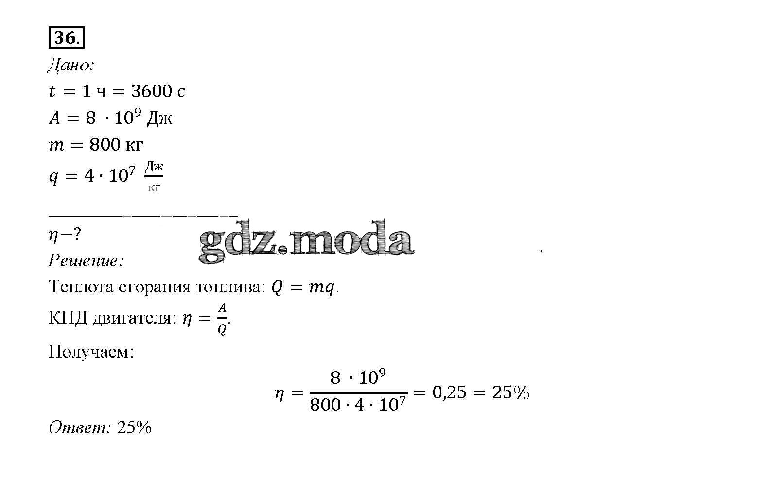 ГДЗ решение к заданию № 36 Физика 8 класс Перышкин А.В. Дрофа 2014 ФГОС бесплатно на гдз.мода!