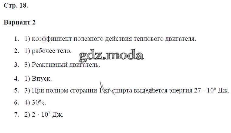 ГДЗ решение к заданию № 18 Физика 8 класс тетрадь-экзаменатор Жумаев В.В. Просвещение 2012 ФГОС бесплатно на гдз.мода!
