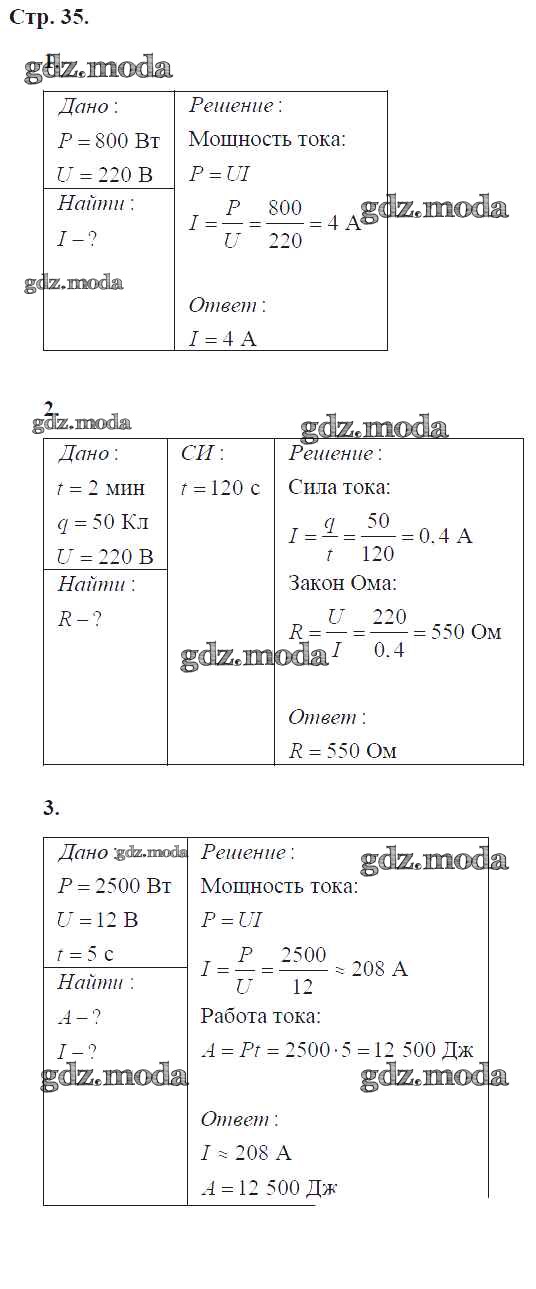 ГДЗ решение к заданию № 35 Физика 8 класс тетрадь-экзаменатор Жумаев В.В. Просвещение 2012 ФГОС бесплатно на гдз.мода!