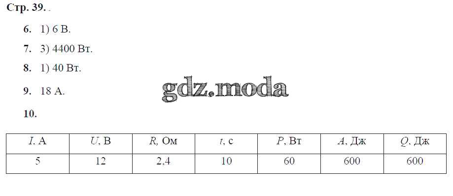 ГДЗ решение к заданию № 39 Физика 8 класс тетрадь-экзаменатор Жумаев В.В. Просвещение 2012 ФГОС бесплатно на гдз.мода!