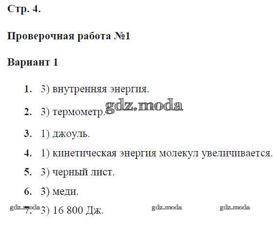 ГДЗ решение к заданию № 4 Физика 8 класс тетрадь-экзаменатор Жумаев В.В. Просвещение 2012 ФГОС бесплатно на гдз.мода!