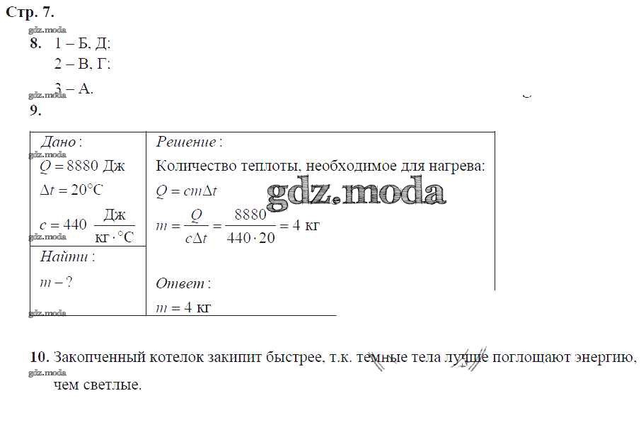 ГДЗ решение к заданию № 7 Физика 8 класс тетрадь-экзаменатор Жумаев В.В. Просвещение 2012 ФГОС бесплатно на гдз.мода!